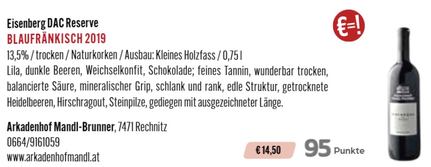 Der Eisenberg DAC Reserve 11 war Sieger bei der DAC Eisenberg - Verkostung im Vinaria (5 Sterne)