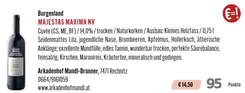 Neben zahlreichen Goldmedaillen bei der Burgenländischen Landesprämierung sowie alljährlichen Eintragungen in verschiedene
